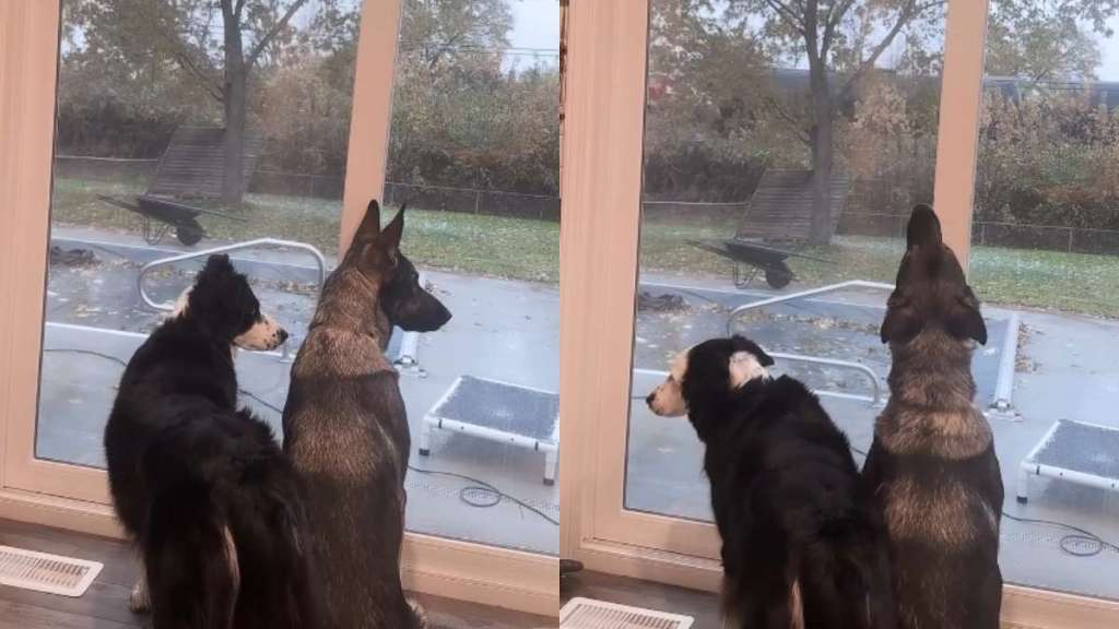 An Instagram video from @indianadogmom shows two dogs taking their places by the window because the train is coming, and they refuse to miss it. The hilarious clip features Shiloh, a Border Aussie, and River, a German Shepherd, standing shoulder to shoulder at a tall glass window, staring hard to the right as if they can already see the engine turning the corner. They look like two little kids waiting for something big to roll by.