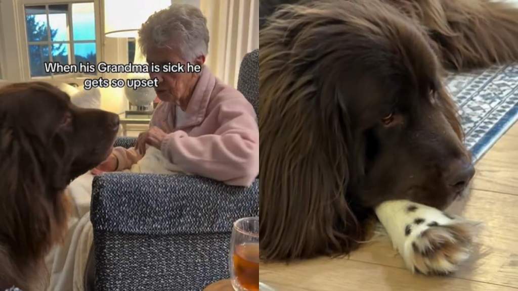 The onscreen caption explains what viewers already see, reading, “When his Grandma is sick he gets so upset.” Meanwhile, under the video, the owner also wrote in the caption, “She’ll be okay! He’s just so sensitive to her every move.”