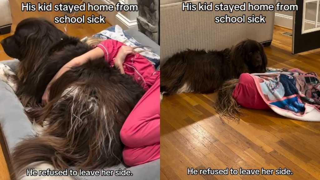 Sick days usually mean canceled plans, extra naps, and a serious need for comfort. While soup and blankets help, nothing quite compares to unconditional companionship. Dogs, in particular, seem to know exactly when to slow down and stay close. That instinct is on full display in a viral video showing a massive dog gently watching over his sick kid.