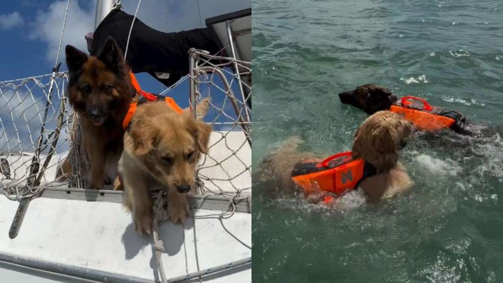 In a hilarious dog video on Instagram, a German Shepherd named Apollo and a Golden Retriever named Neptune have gone for an outing. The clip begins with Apollo standing on the boat’s deck and looking at the camera. It looks like he is listening to something his owner is telling him.