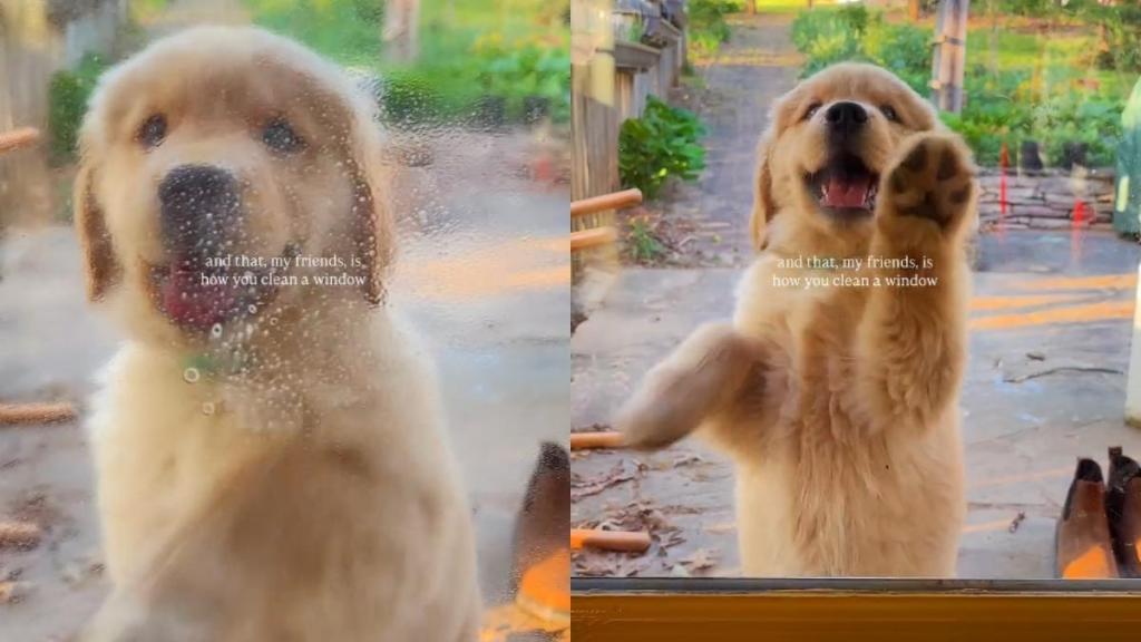 In an adorable dog video on Instagram, a Golden Retriever puppy named Butter tries to help her owner clean a window. Through an on-screen text, the uploader mentions, “And that, my friends, is how you clean a window.” The clip then shows the pup standing on the other side of the glass, giving her best to lend a hand.